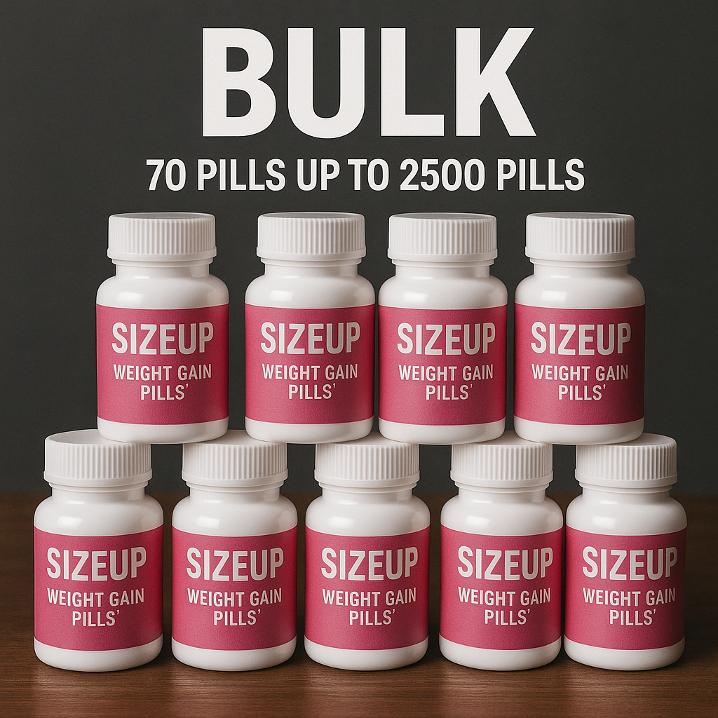 Need SizeUp weight gain supplements in bulk? Bulk starts at 70 pills to 2500 pills. Price starts at $50.00. Stock up and save! Contact us today for wholesale pricing and fast shipping at email: mayyousizeup@yahoo.com
