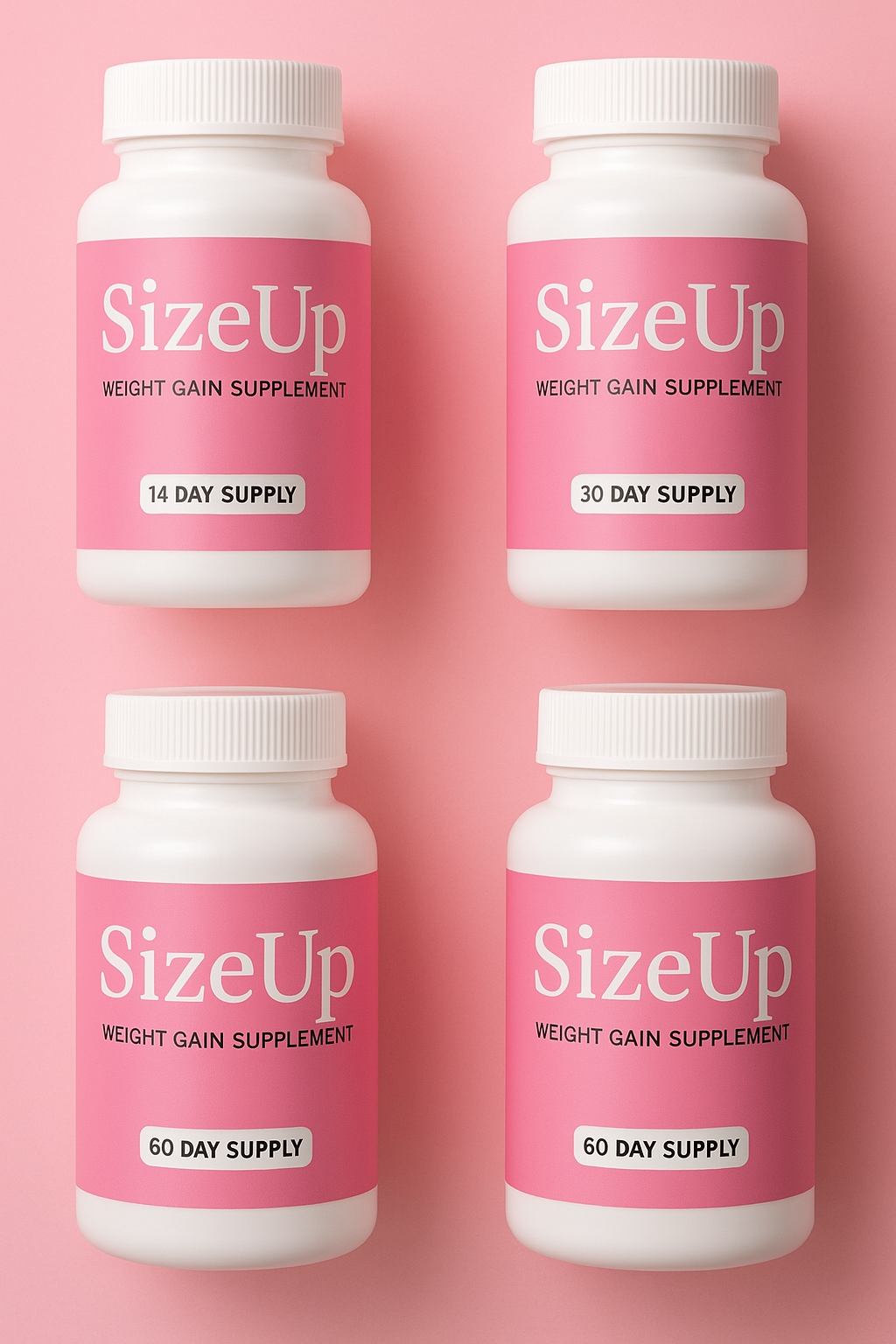SizeUp Weight Gain Pills are a natural appetite-boosting supplement created for individuals who want to gain weight, add healthy body mass, and build curves. Formulated with ingredients that support digestion, calorie absorption, and consistent daily hunger, SizeUp helps users achieve visible results without harsh stimulants or heavy side effects.