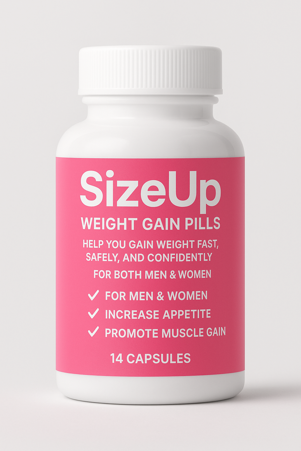 SizeUp Weight Gain Supplements provides 14 powerful tabs designed to help boost appetite, support healthy weight gain, and promote muscle growth. Take one supplement daily to see noticeable results in size, strength, and overall body mass within a month. Perfect for individuals looking to bulk up quickly and safely.